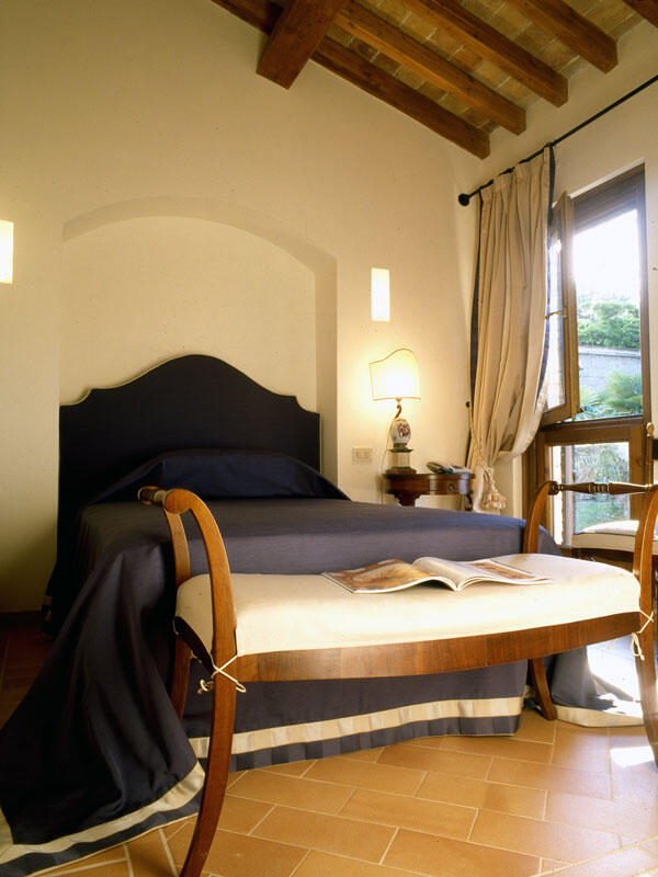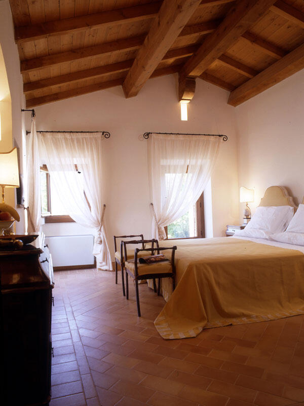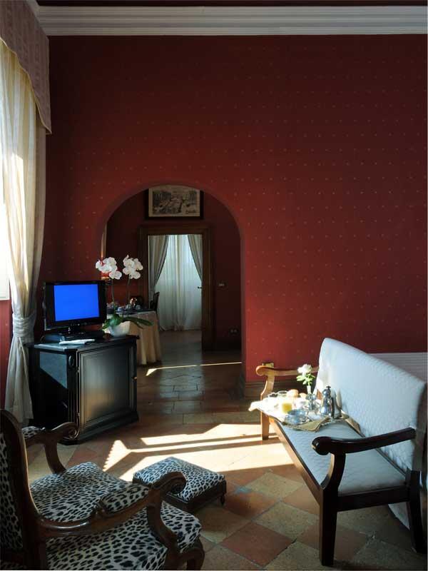 At the end of the 1600s, a façade section was added to the defensive Castle in the shape of an inverted “T,” which transformed the structure into a country home for private use. With this addition, the interior of the Palazzo became habitable, and today features an imposing reception floor and two additional stories where seven prestigious suites are now located, where the family used to live during the summer months. Further down the hill, beyond the Oratory, ancient stables dating back to the 1600s are housed, and are now a venue designated for events and cultural activities. Adjacent to them is another impressive structure, namely a Residence from the 1800s which was formerly a rural farmhouse, and which now contains five apartments and a charming restaurant overlooking the swimming pool and surrounded by a Mediterranean garden.