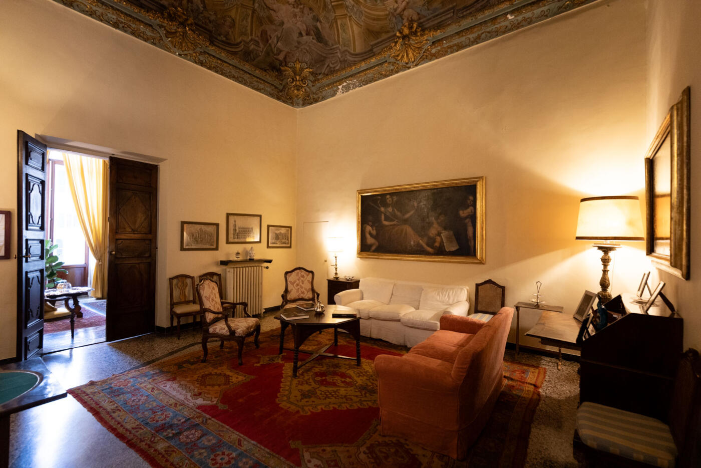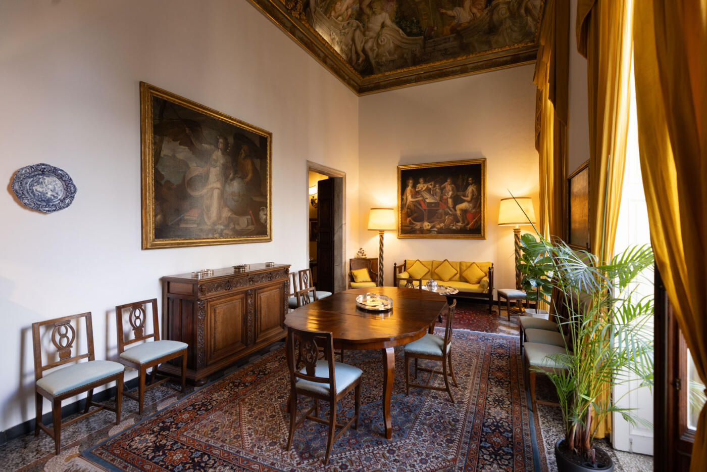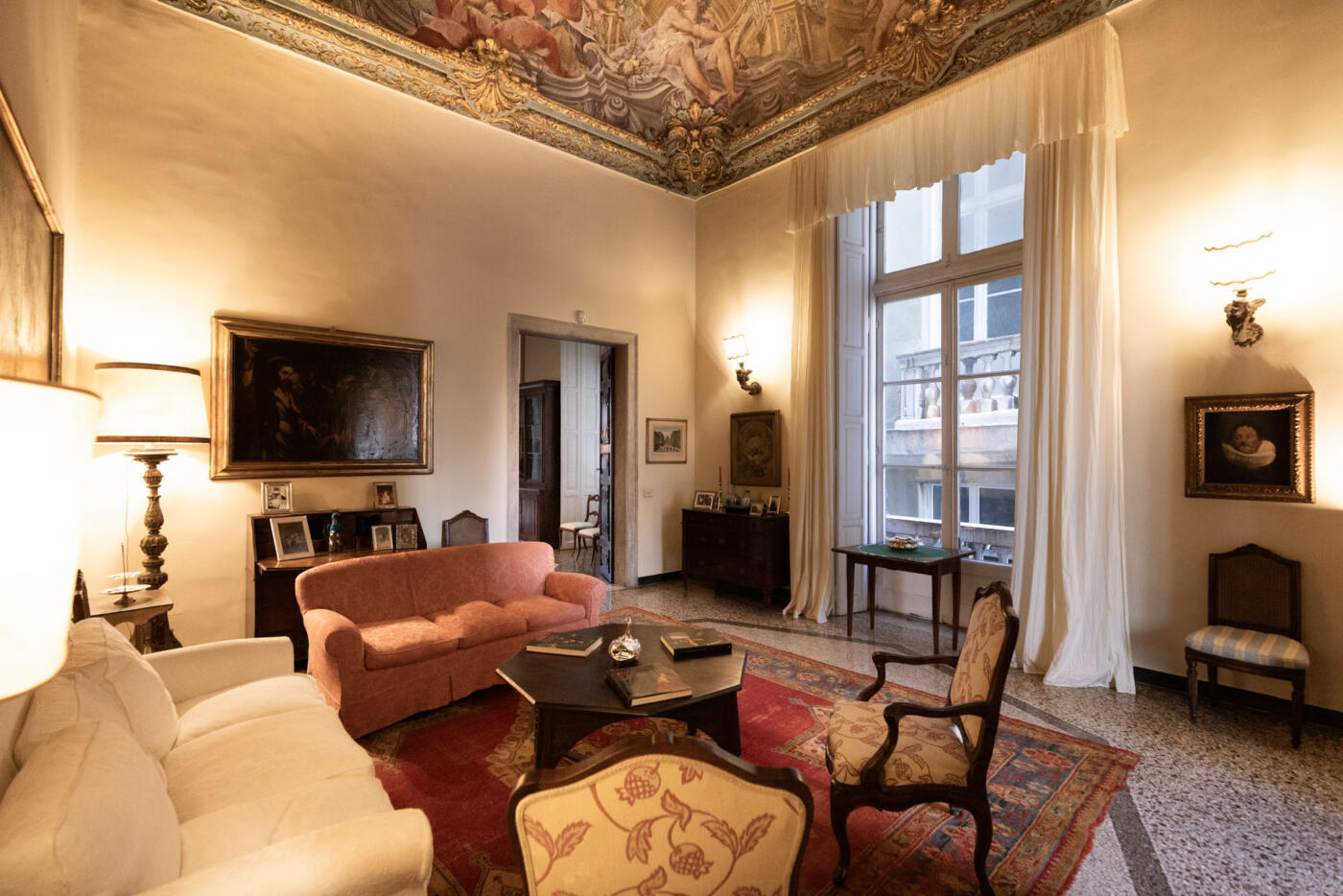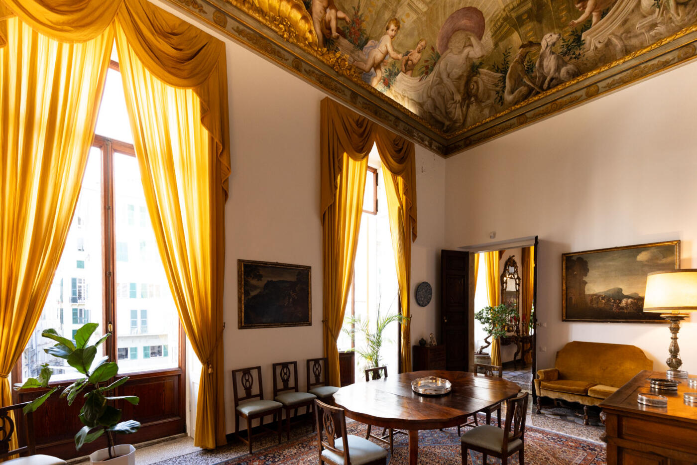 Completed in 1618, its piano nobile preserves rooms frescoed by Domenico Piola, Sebastiano Galeotti, and Antonio Haffner: myths, allegories, and baroque quadrature paintings that reflect the prestige of the families who once lived there.