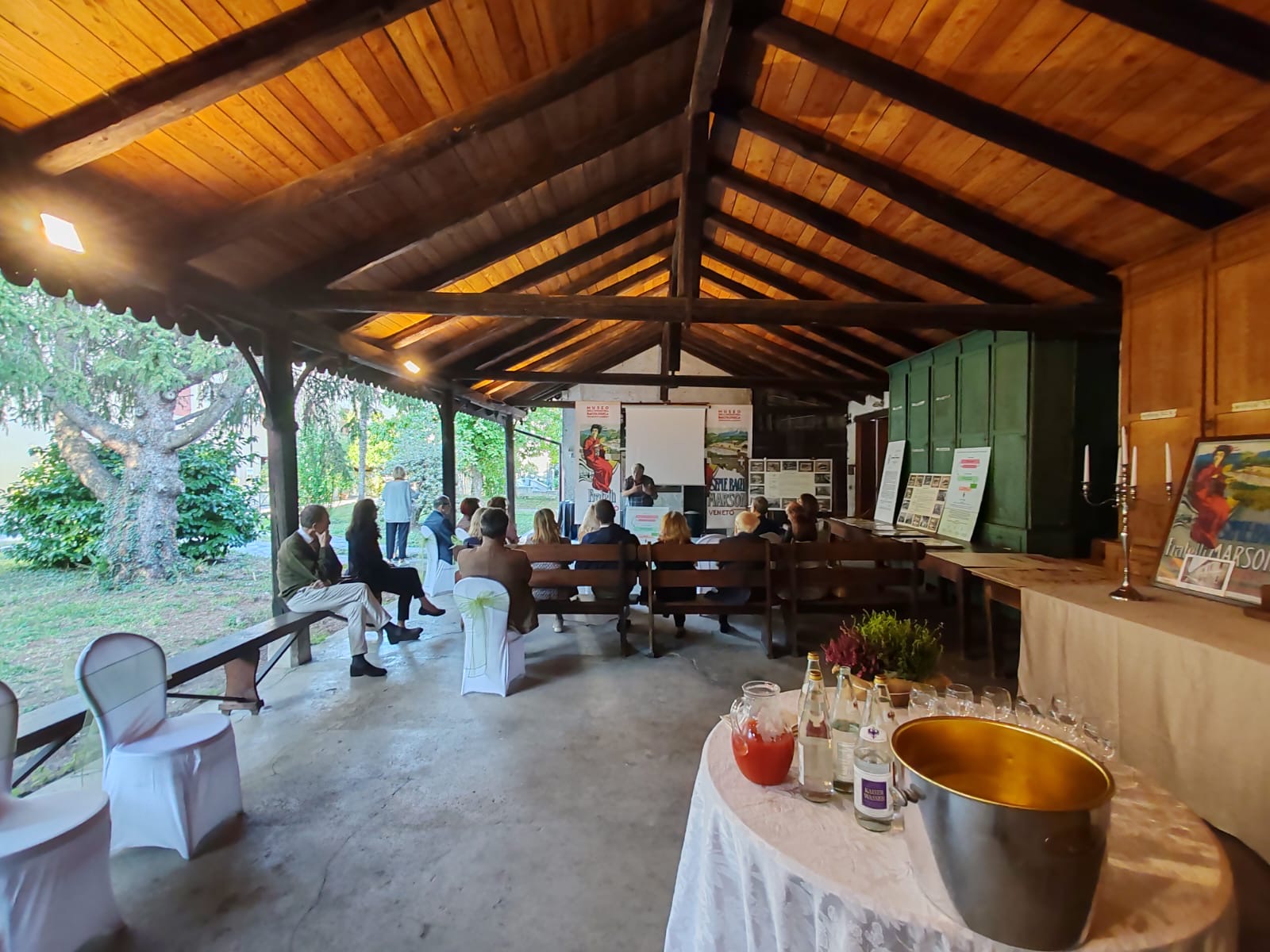 Nelle adiacenze che delimitano l’area verde interna si trovano la loggia ove avveniva il conferimento dei bozzoli da riproduzione, l’essiccatoio bozzoli, la liscivera, e l’antica cantina.