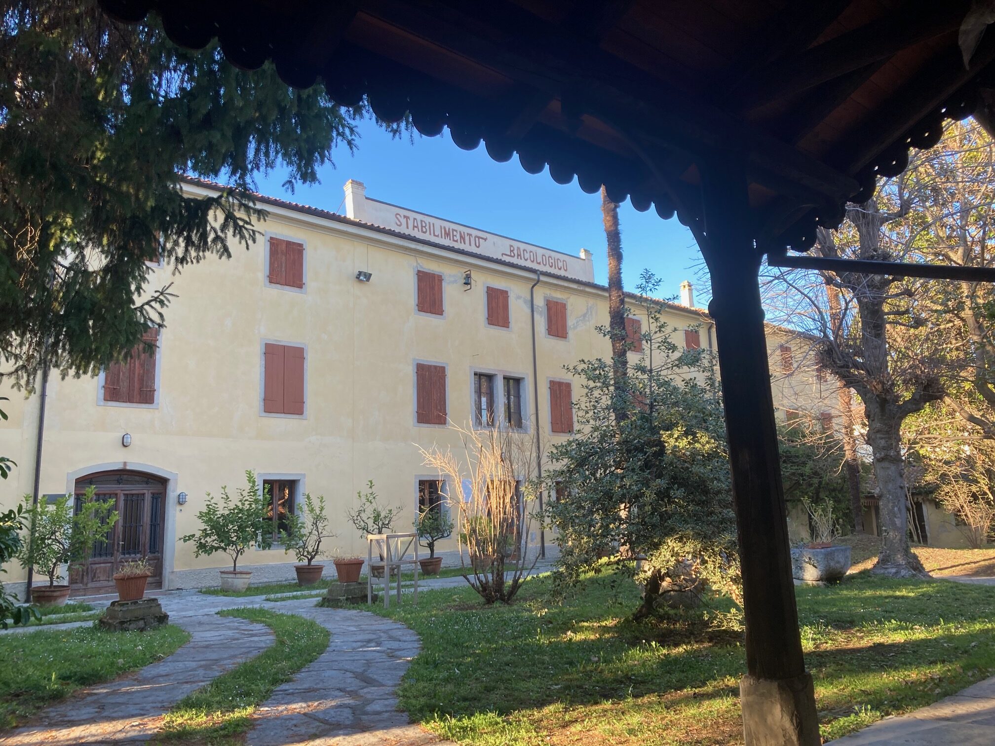 Gli edifici costituenti il caseggiato fronte strada erano destinati principalmente alle abitazioni padronali. All’interno del Complesso, sul frontone dell’edificio ora Museo, è conservata la dicitura originale Stabilimento Bacologico.