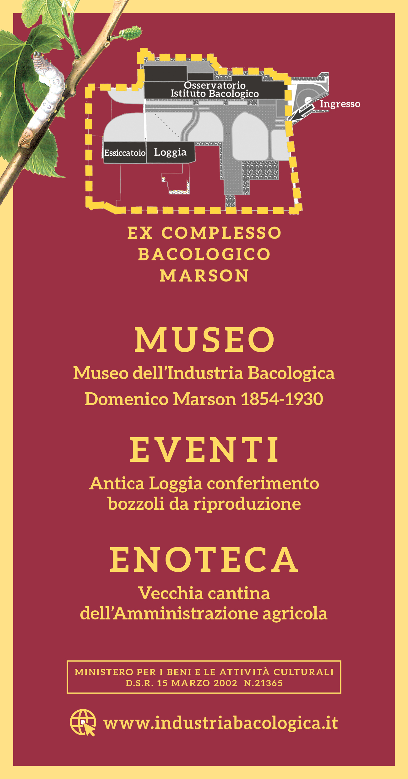 Il Complesso Bacologico Marson si trova in centro a Vittorio Veneto entro un isolato in località Meschio e comprende una serie di edifici storici che delimitano al loro interno una area verde esclusiva.