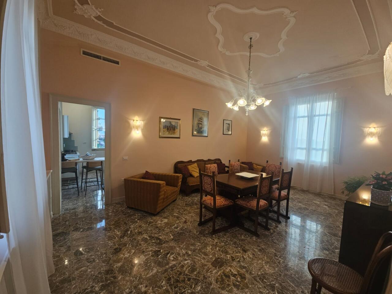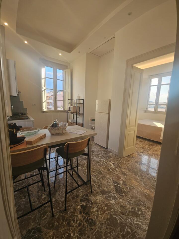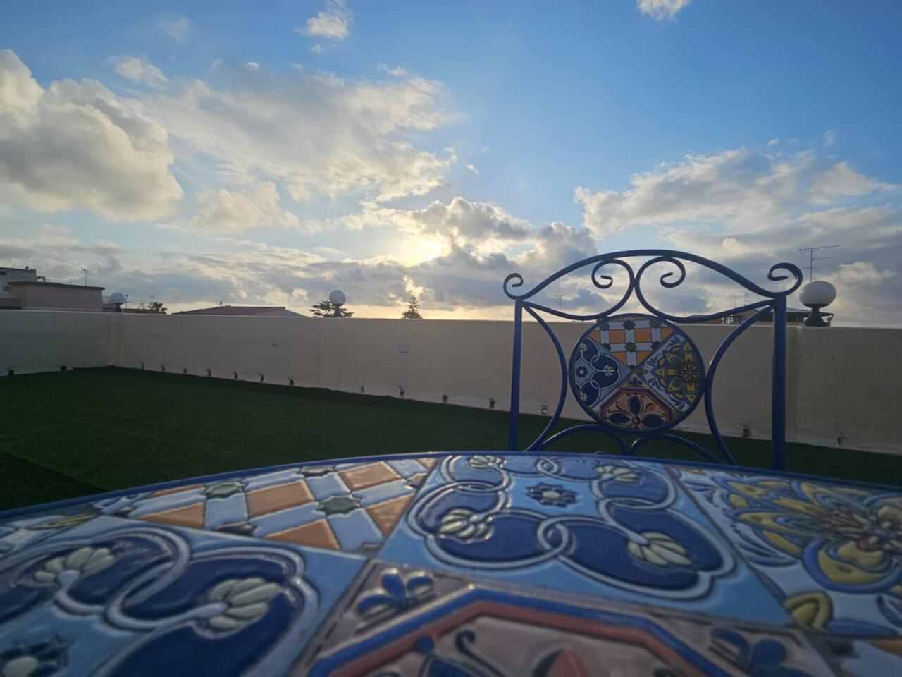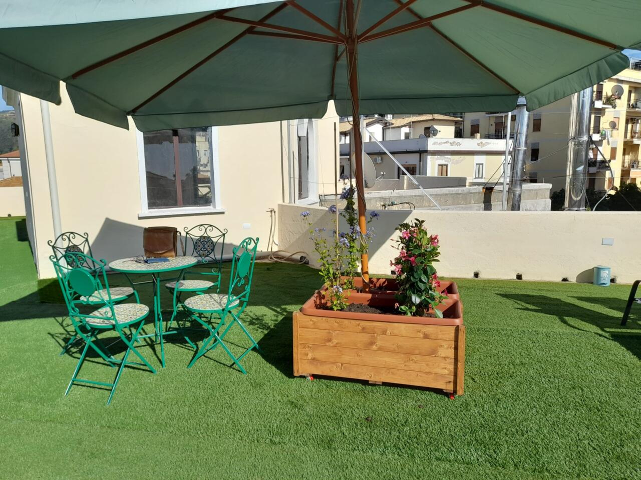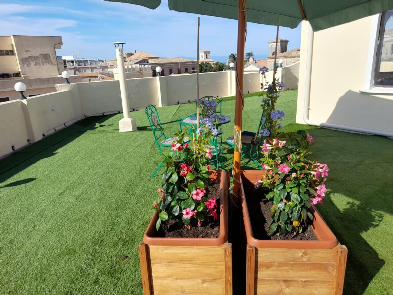Il grande terrazzo panoramico di 250 mq, attrezzato con lettini e tavolini, si affaccia sulla piazza principale e sul centro storico, offrendo uno spazio esclusivo per rilassarsi al sole o gustare un pasto all’aperto. Per i soggiorni di almeno sette notti è incluso il servizio di riassetto, mentre su richiesta sono disponibili una lavanderia e una culla. È previsto un deposito cauzionale.