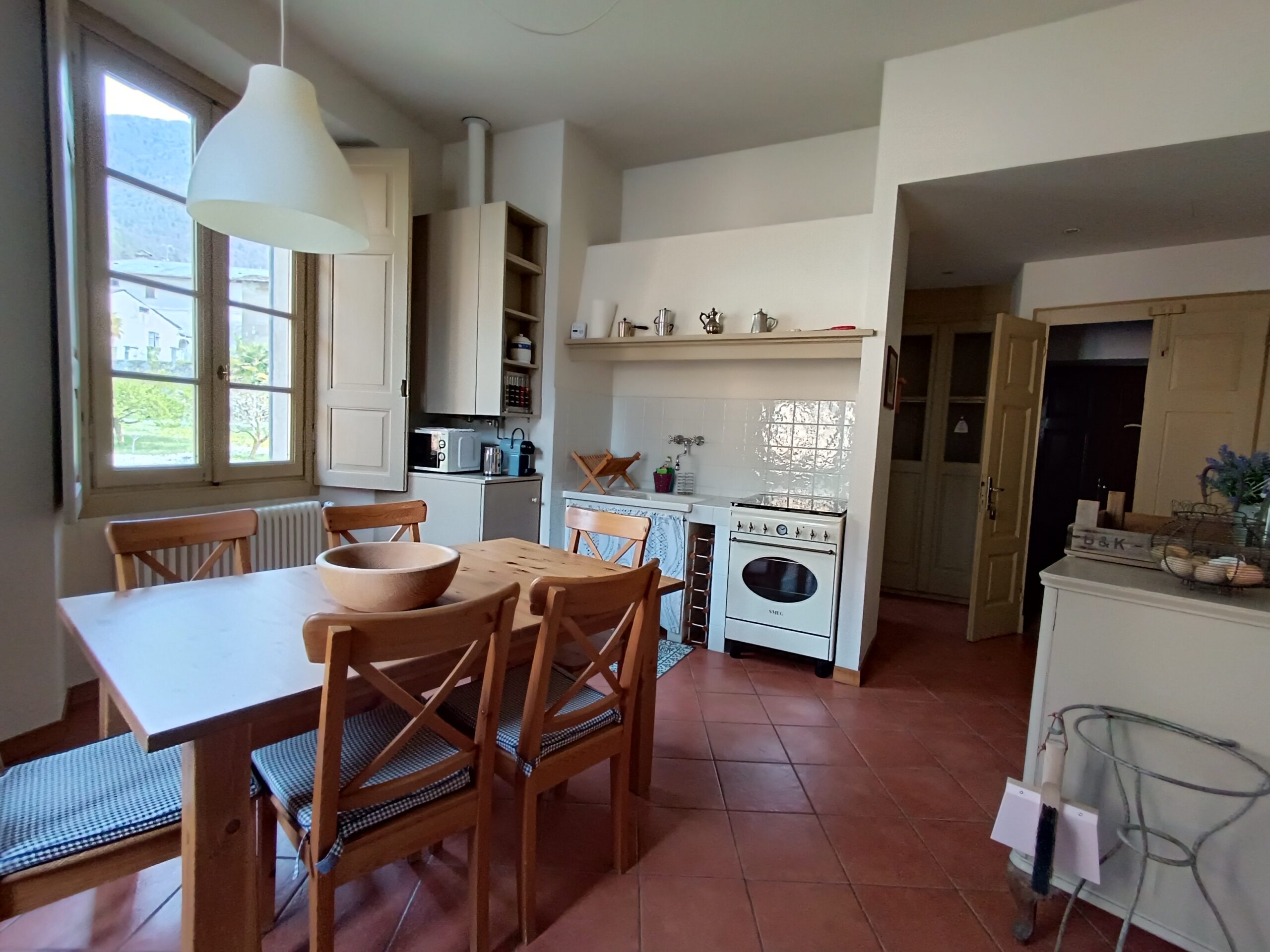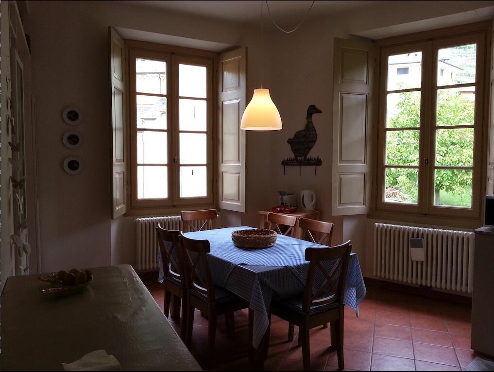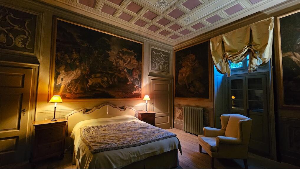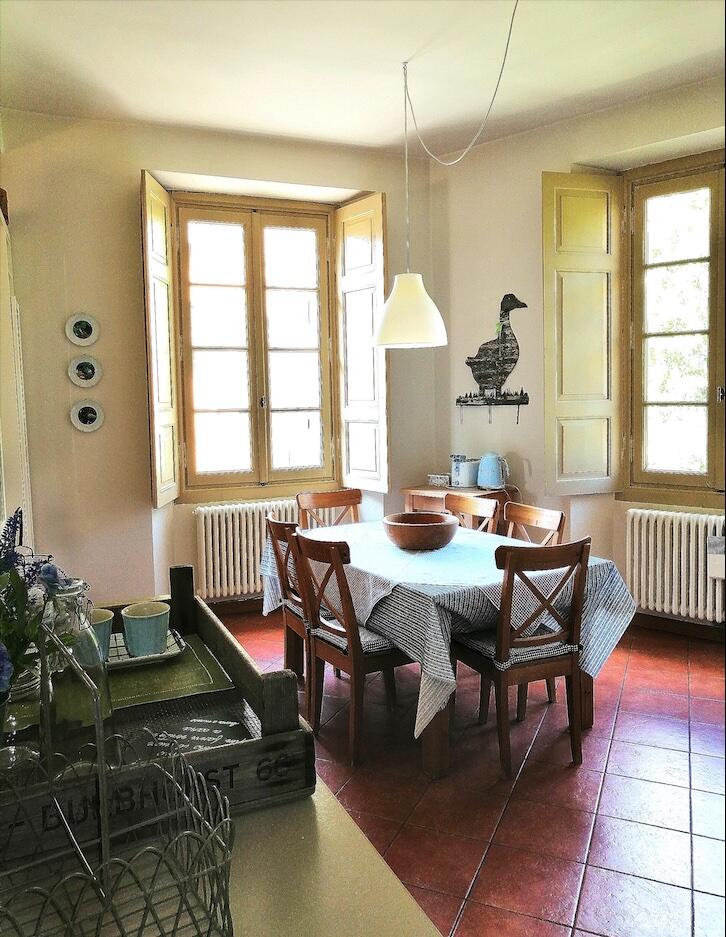 •    Il Granaio (fino a 3 ospiti): Situato al secondo piano con ingresso indipendente, ma anche comunicante col primo piano del Palazzo, è un rifugio luminoso. Dispone di una sala da pranzo con cucina, una camera matrimoniale e un salotto con divano letto (120×195) affacciato sul loggiato che regala una vista incantevole.
