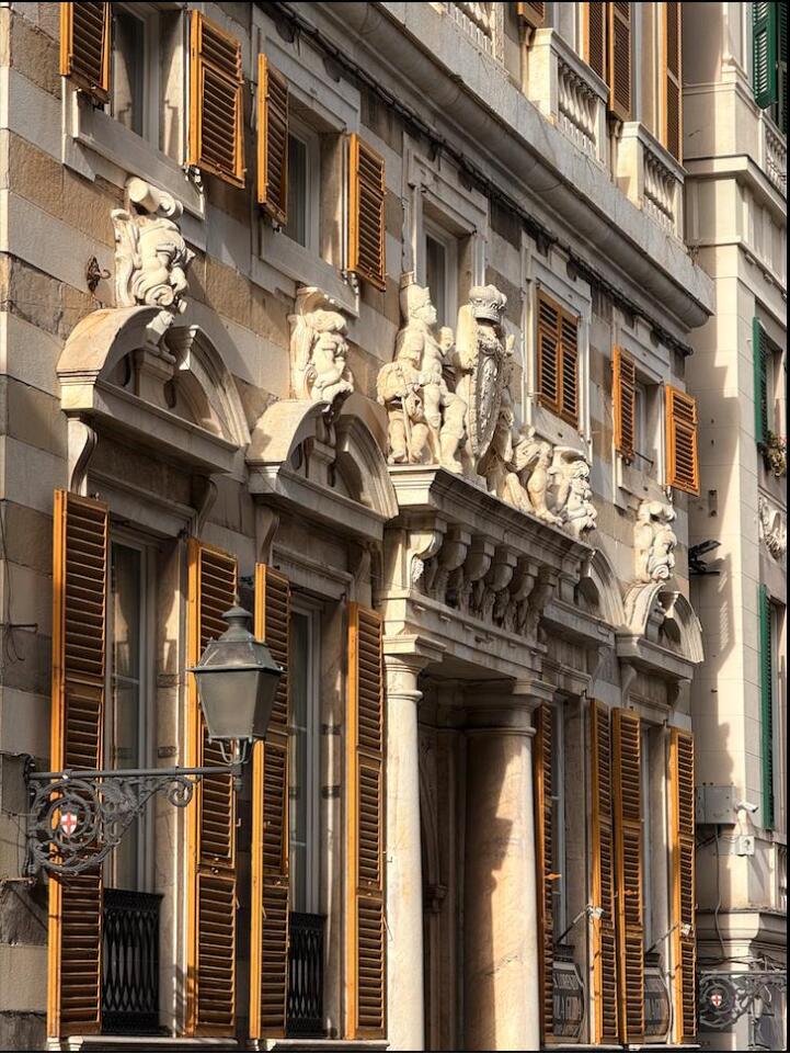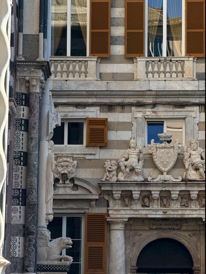 Palazzo Sinibaldo Fieschi, uno dei Palazzi dei Rolli di Genova, si affaccia su Piazza San Lorenzo con la sua scenografica facciata in marmo e ardesia. Completato nel 1618, conserva al piano nobile ambienti affrescati da Domenico Piola, Sebastiano Galeotti e Antonio Haffner: miti, allegorie e quadrature barocche che raccontano il prestigio delle famiglie che lo abitarono.